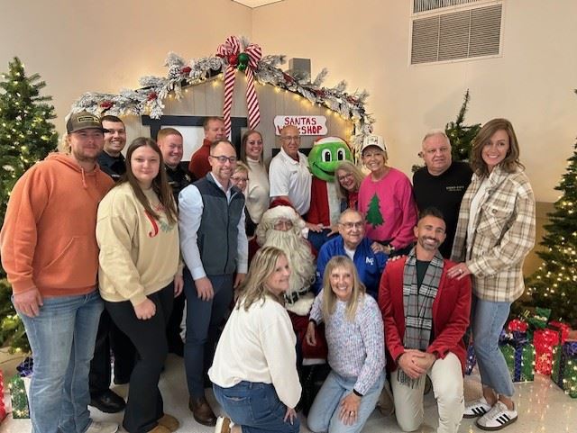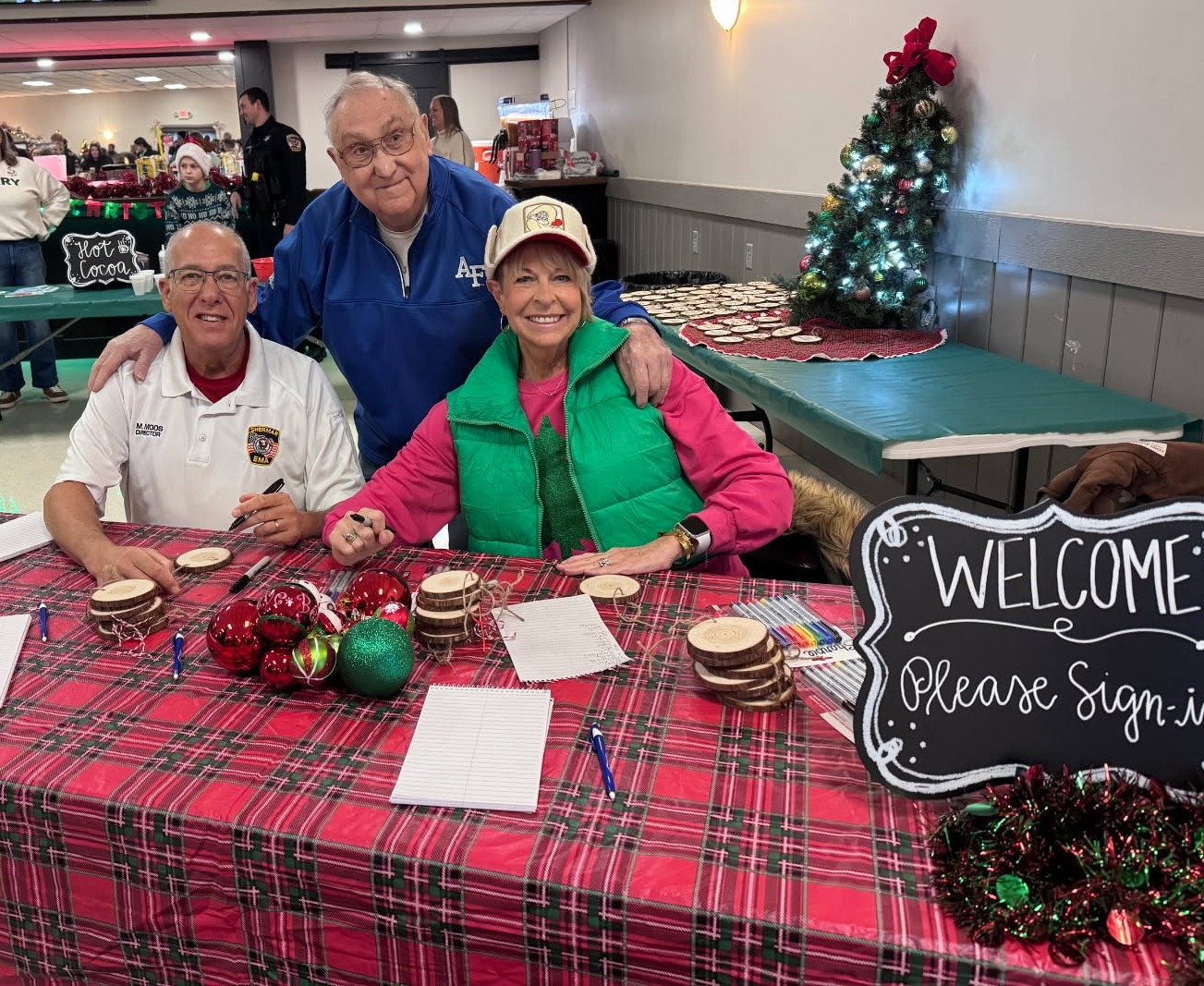 Your Ornament Crew: (Left to Right) Mike Moos, EMA Director; Rich Coon, Retired Fire Chief and Sarah Roderick, Sherman Chamber of Commerce President